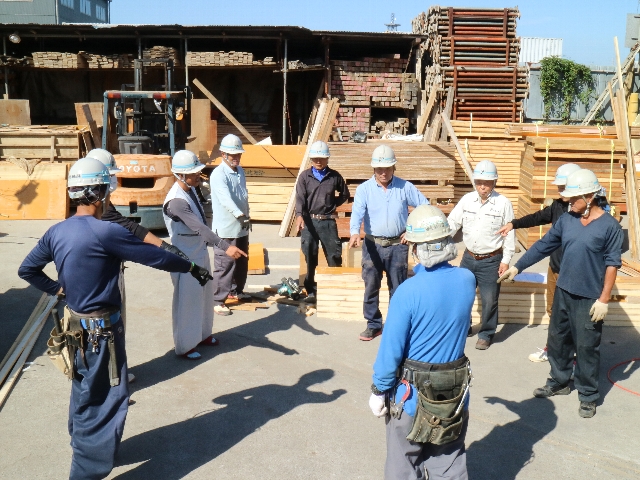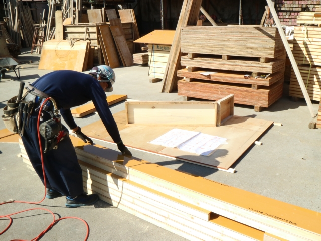 | 当社の概要にはじまり、作業場のルールや作業手順、安全に関する教育。作業上必要な資格や教育について、バックアップを行います。作業所では、始業前の朝礼、ミーティングに参加します。 | 元請図面に基づき、施工部材の加工を資材センターにて行います。 | 作業場に搬入された加工材を組み立てていきます。調整の必要な部材については現場加工を行います。 |